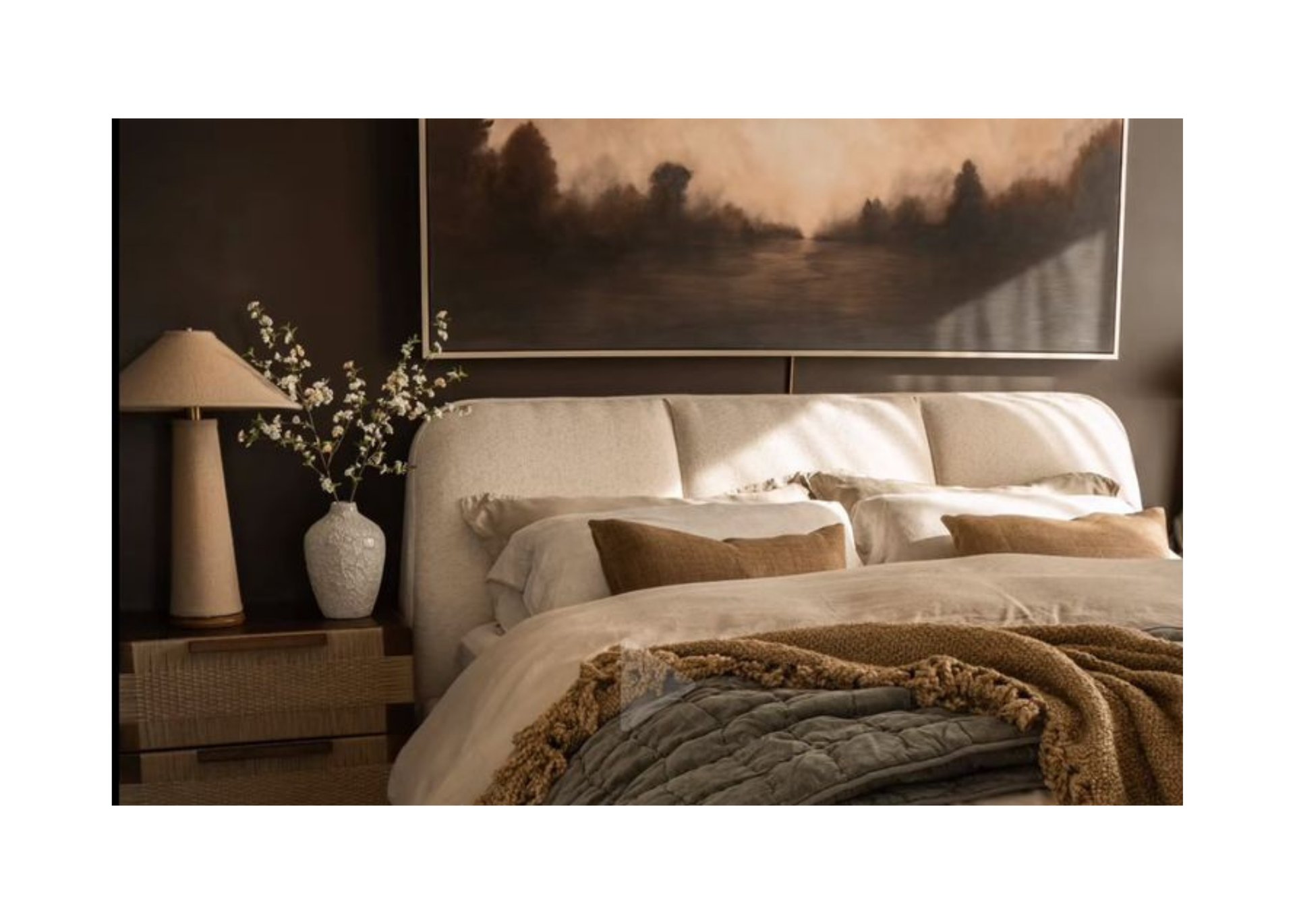 Moody Accents: Darker lampshades or textured wall art add depth.
