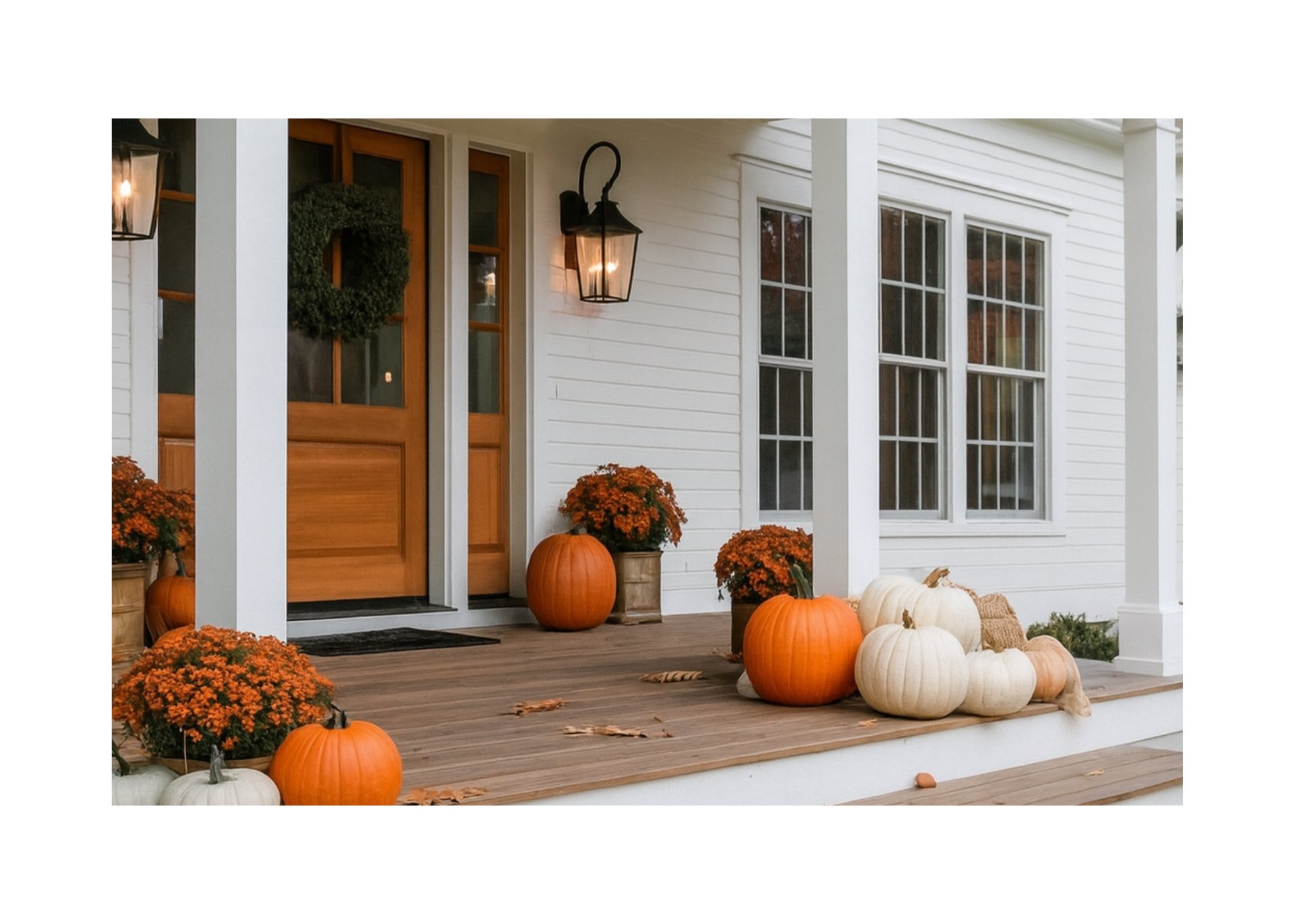 Natural Neutrals: Swap bright summer florals for muted pumpkins, wheat bundles, and heirloom gourds.